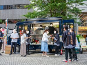 かごしま遊楽館2階「遊食豚彩いちにいさん」では,かごしまブランド産品等(オクラ,かぼちゃ,ばれいしょ,らっきょう,新ごぼう,米,辺塚だいだい,茶,パッションフルーツ)を使用した料理が提供され,日比谷ゴジラスクエアでは,JA食肉かごしまがキッチンカーを出動させ,鹿児島黒牛のサーロイン焼肉の試食や販売を行いました。どちらも販売予定数を完売し,大盛況でした。
