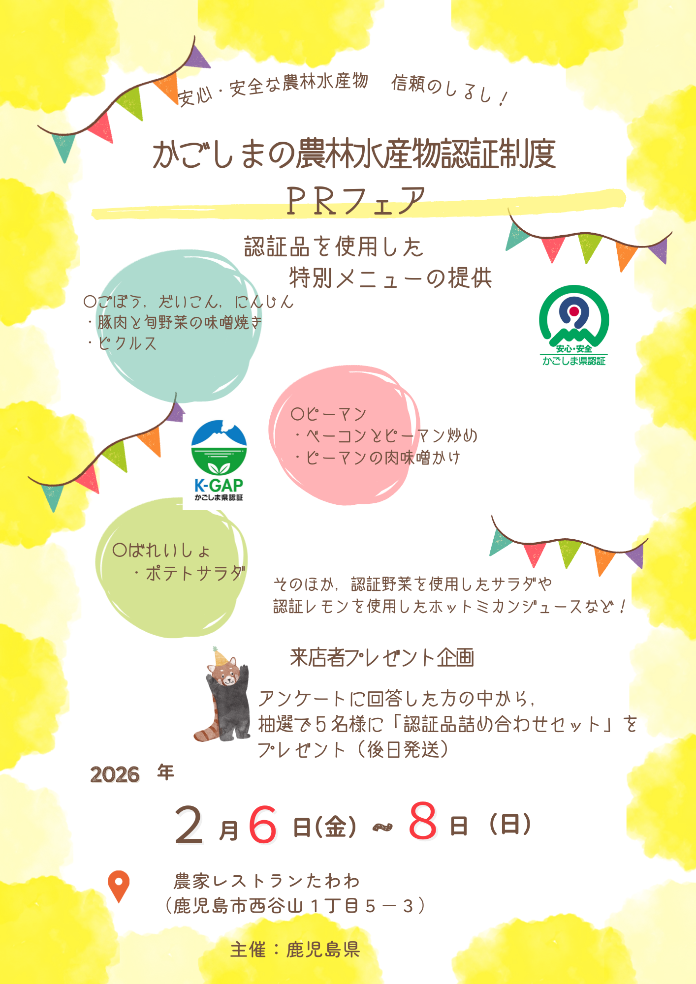 「かごしまの農林水産物認証制度」の認知度向上や認証品の利用促進を図るため、PRフェアを開催します!